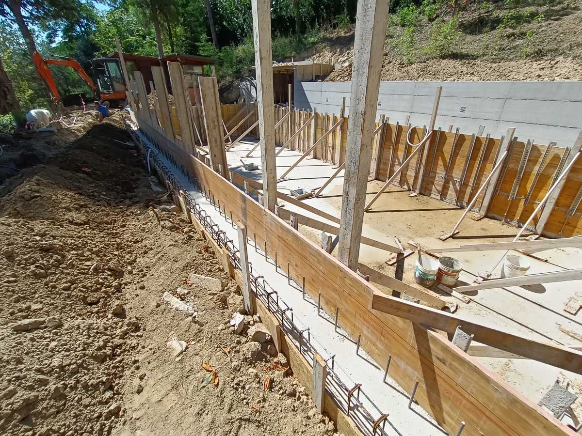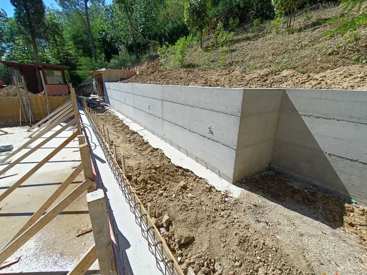 Le pareti perimetrali delle vasche e del vano tecnico presentano uno spessore di 25 cm, garantendo solidità e stabilità strutturale. Per quanto riguarda il solaio di copertura della vasca di compensazione e del vano tecnico, è stato utilizzato un getto di calcestruzzo armato con uno spessore di 15 cm, assicurando resistenza e durabilità nel tempo.