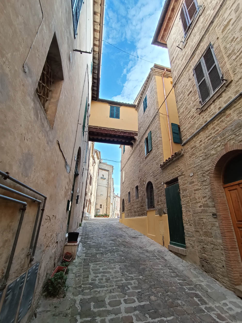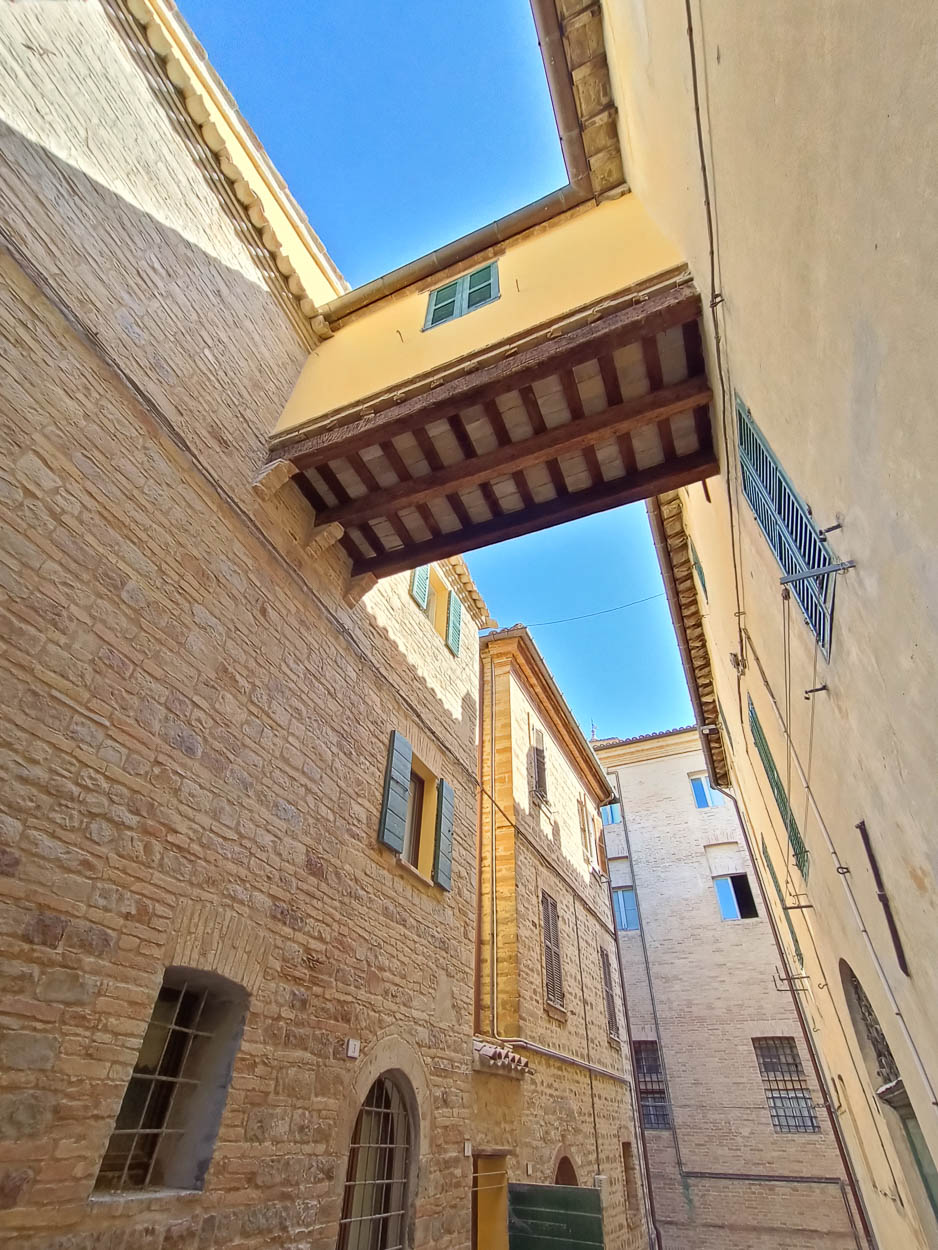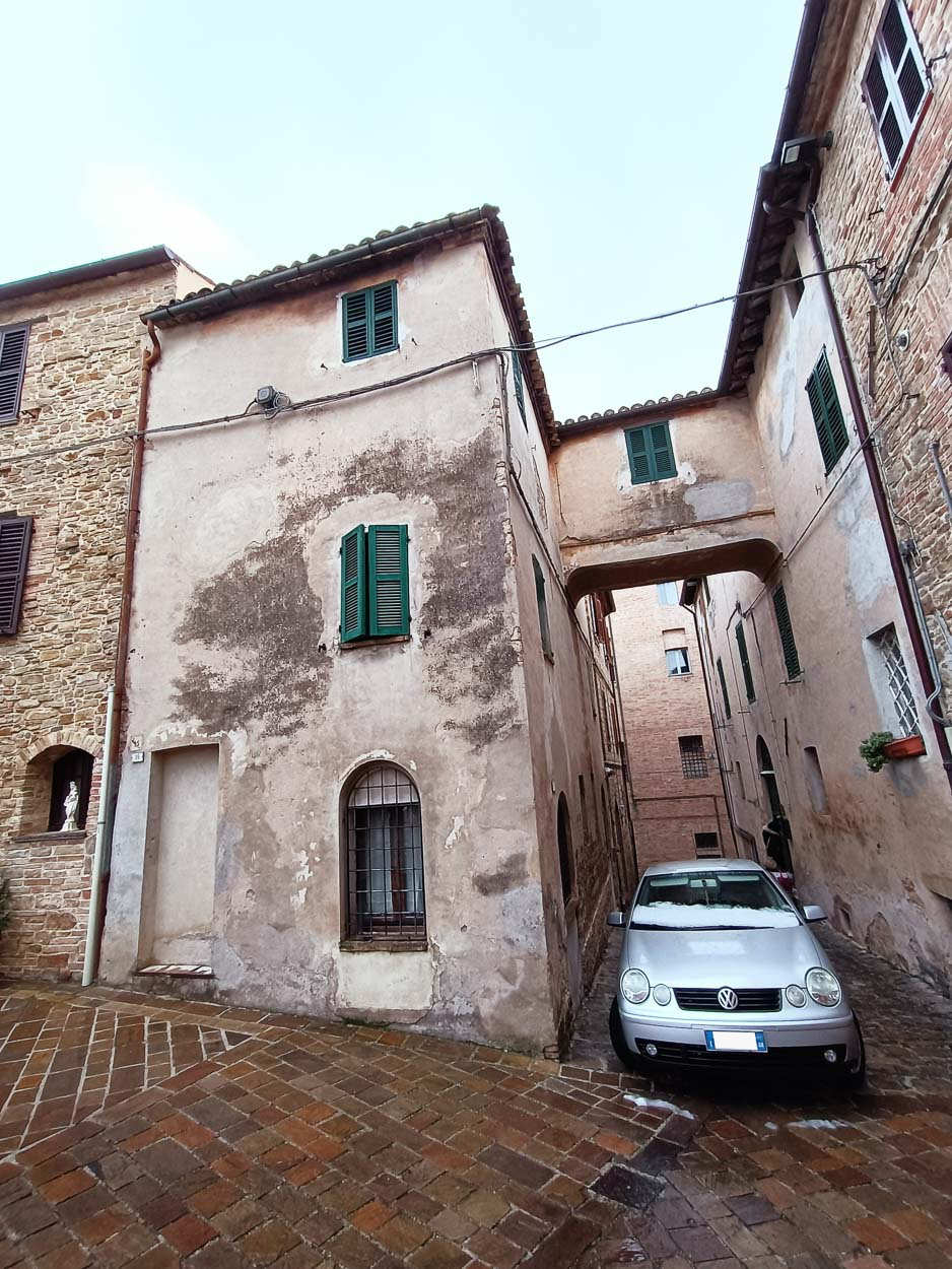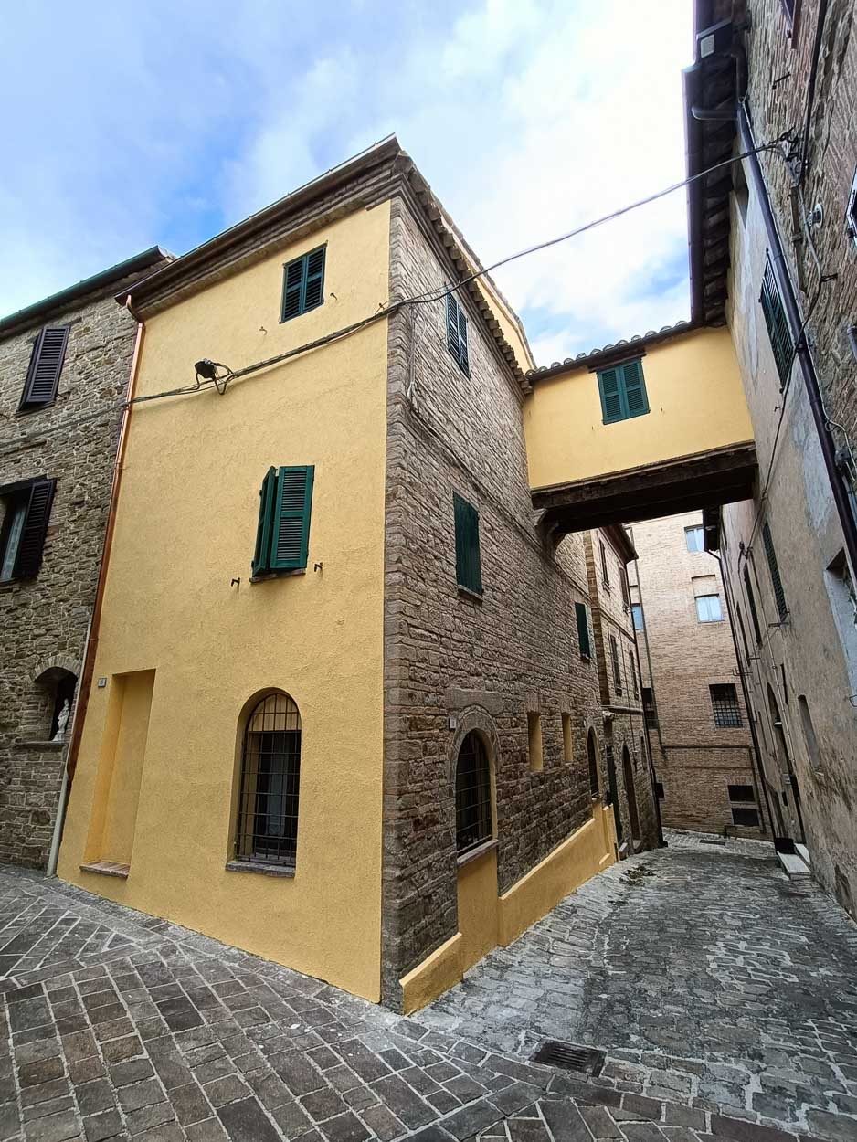 L’edificio, situato in pieno centro storico di Cupramontana, è stato interessato da interventi di natura strutturale mirati al consolidamento della copertura e delle murature, da interventi di ripristino delle facciate esterne e del “ponte” sopraelevato e da interventi di isolamento termico.