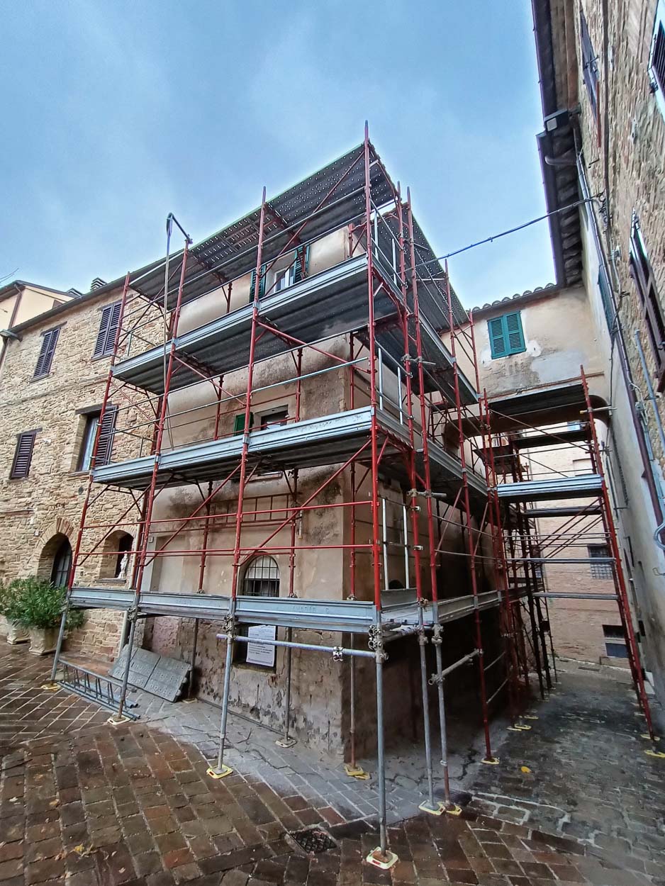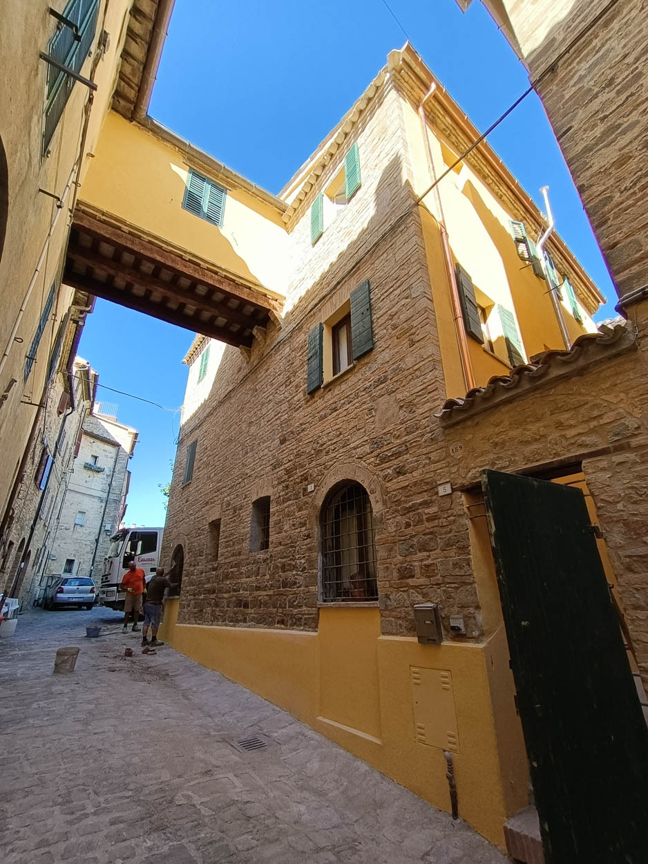 È stato ripristinato l’intonaco esterno degradato, ritinteggiato poi con colori consoni al centro storico, e parte della muratura è stata invece ripulita e stuccata in modo da lasciarla “facciavista”.