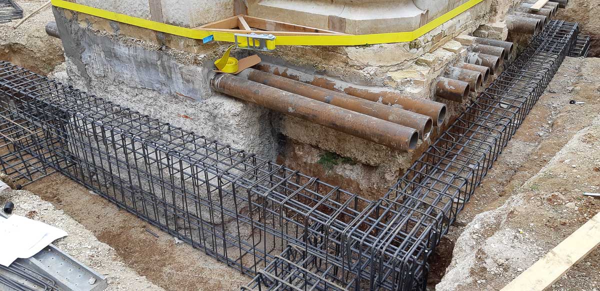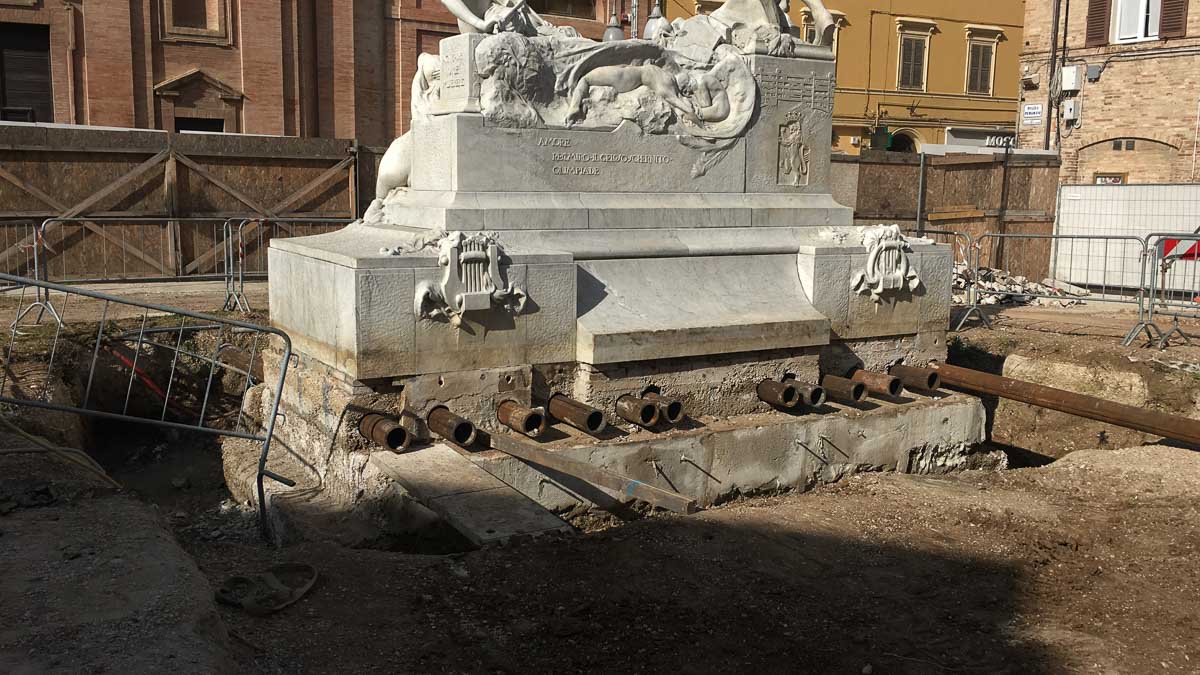 Dal punto di vista tecnico, la messa in sicurezza del monumento è stata realizzata con carpenteria in legno e acciaio, formando una “gabbia” utilizzata per il sollevamento e lo spostamento. Le operazioni hanno comportato lo stacco della fondazione esistente, il sezionamento e il successivo rimontaggio delle parti, con l’uso di binari appositamente costruiti per la traslazione.